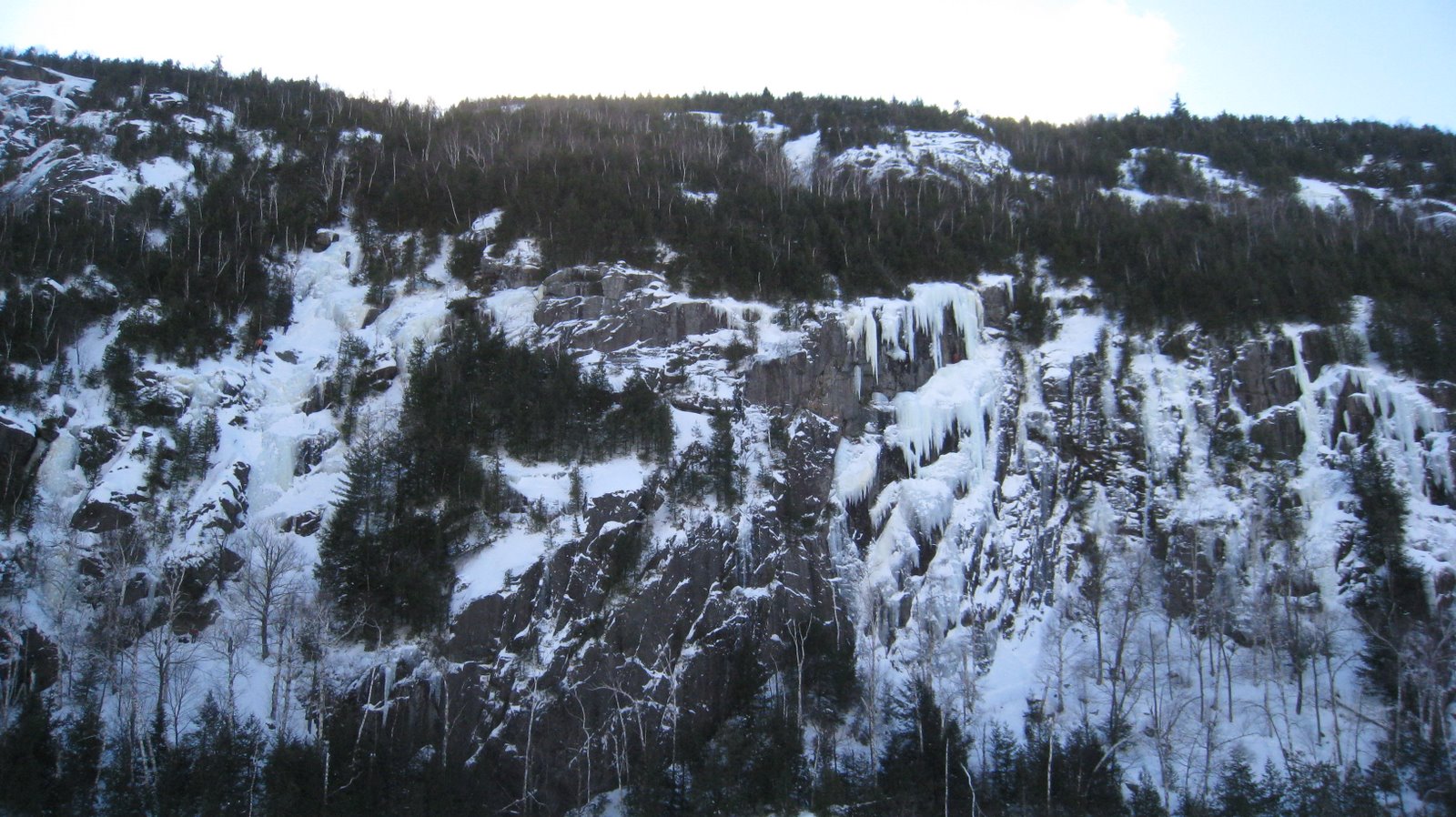 I got my first taste of ice climbing in the Adirondacks of New York this weekend. The season is well under way here, with lots of climbs being totally formed and hacked up, something that isn’t ever really the case when climbing ice in the Pacific Northwest. From the current home base in Massachusetts (yep!) a couple hours of driving and Marc and I were at Chapel Pond, the epicenter of ‘Daks climbing. It was a cold and windy day, but we were able to scrape our way up a few moderate classics…all about 10 minutes across a frozen pond from the car.