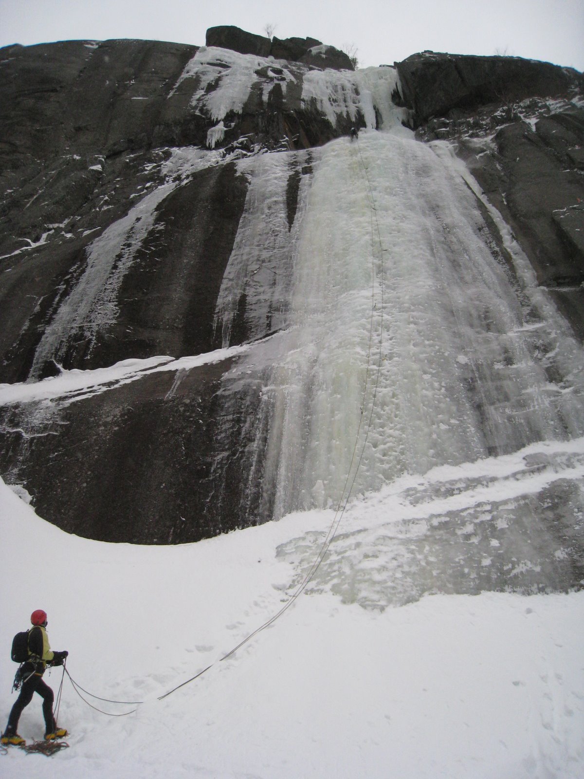 Marc and I were up way before the pre-game show on Superbowl Sunday to have a crack at “Positive Thinking,” supposedly the best ice climb in the Adirondacks. 5:30 came pretty early, but we wanted to be the first on the route so a quasi-alpine start beckoned. Unfortunately, we missed that objective by about 10 minutes to some Canadians who had drive 3.5 hours that morning. They get the alpine start award this time.