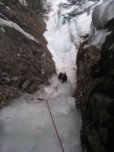 Dustin below the crux on “Hobbit Couloir” WI4+/5-