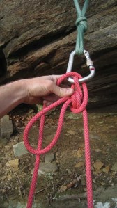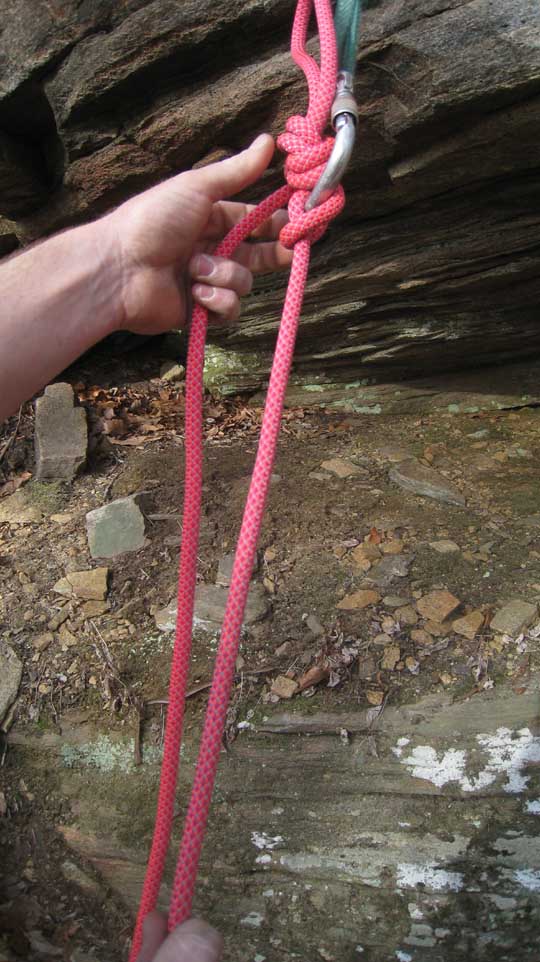 Step one: Lower until the knot abuts the carabiner. My autoblock has been omitted for clarity.