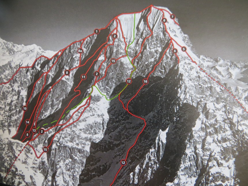 Route overlay. We climbed the green line. Photo courtesy of Alpinist.