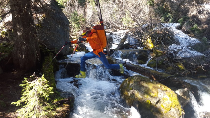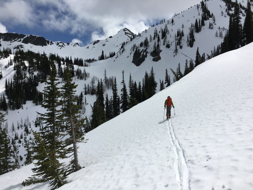 We chose to do the tour in two days, from north-to-south, as to descend sun softened snow and avoid the endless hike up Chatter Creek. It was a wise decision. After just an hour of walking up an old logging road below the Swath, we were on skis for the remainder of our time in the high country. On the exit, we spent two more hours walking down a dry Chatter Creek trail back to our second car. I think this is the best way to do the traverse in the spring months, whereas mid-winter it might make sense to go the other way to ski more powder.