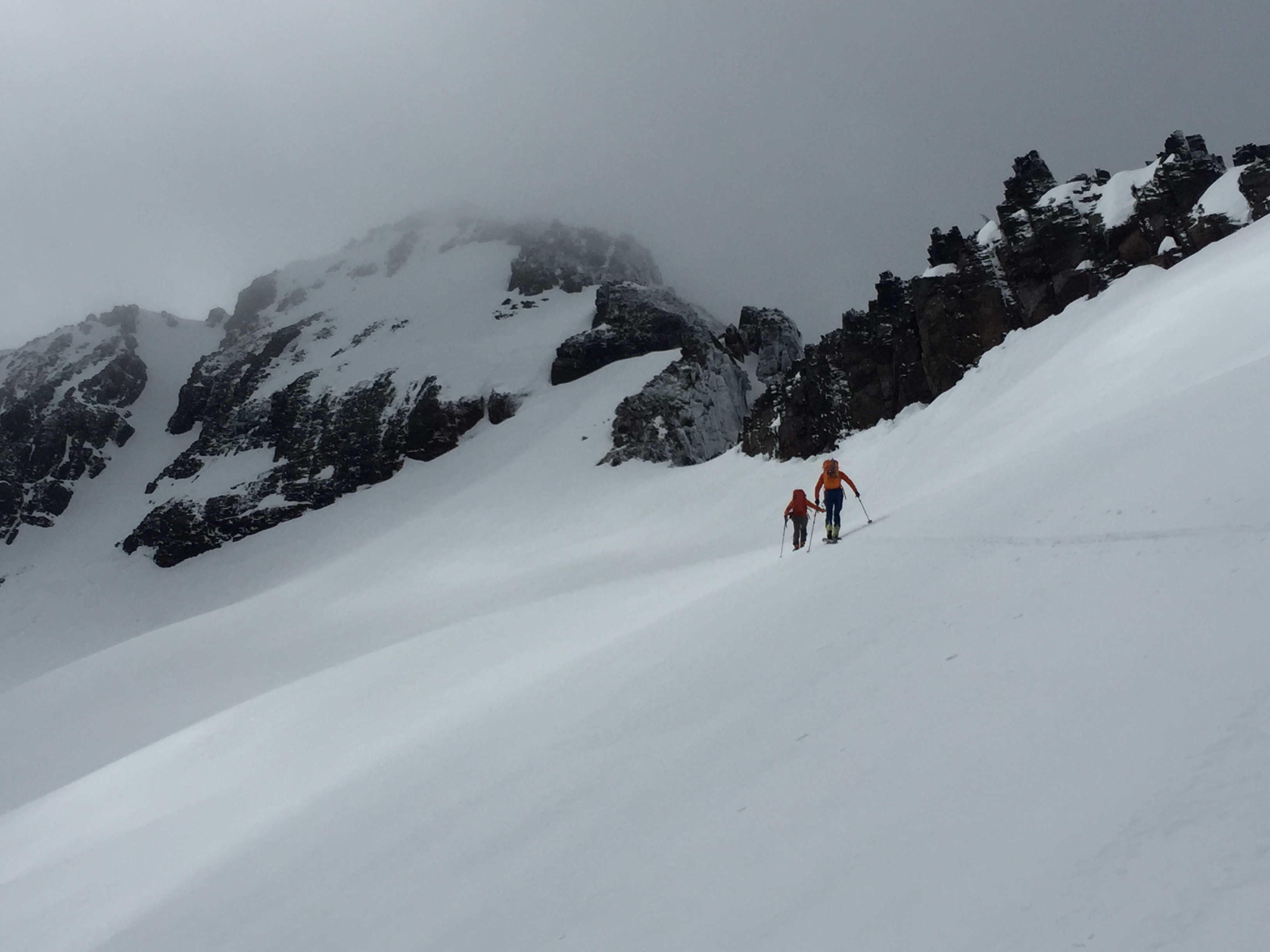 Approaching the gully on Snowgrass/Grace Lakes. Joe Kelly photo.