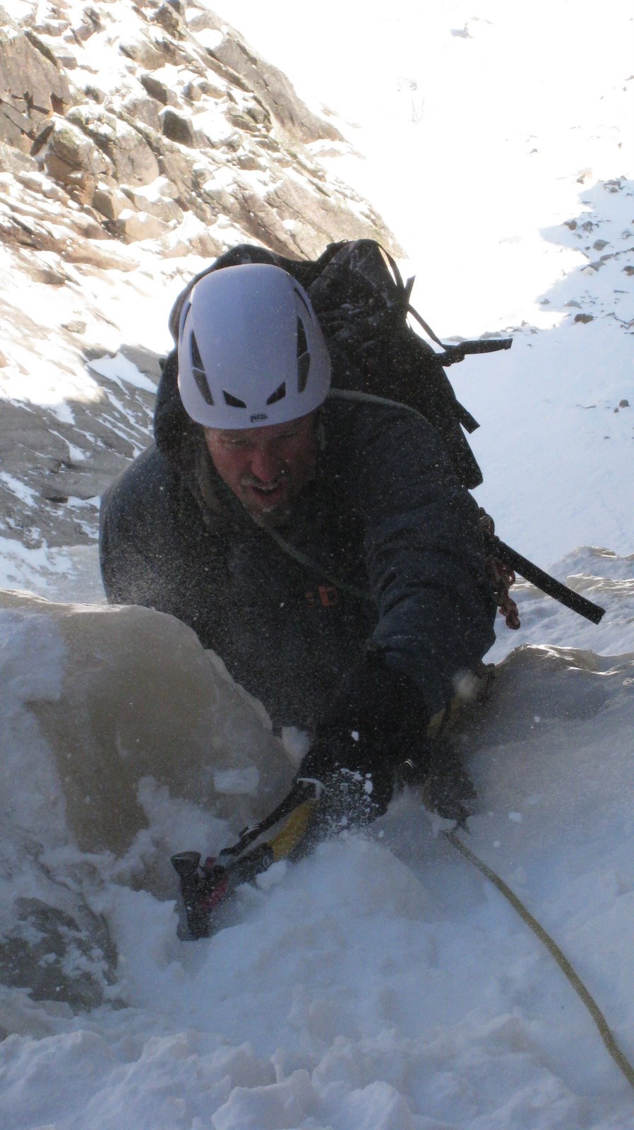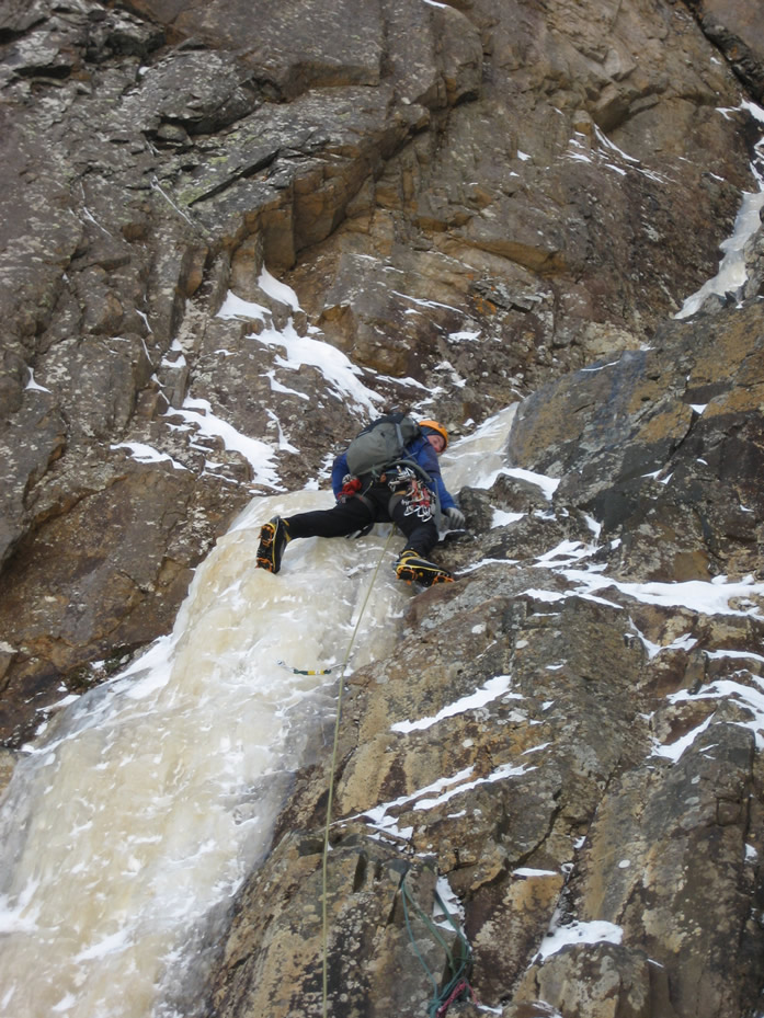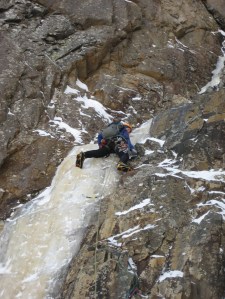 Repentance was first climbed as a wet rock climb in 1959, but found its classic status as a winter route, in 1973, when the 500′ of steep offwidths and chimneys fill with ice. See the pics below…